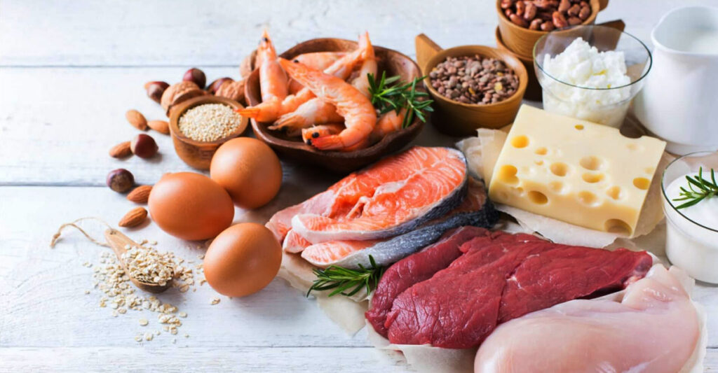 দুধ, ডাল, ডিম, মাছ, মাংস, সয়াবিন, পনির, মটরশুটি, বাদাম ও শুকনো ফল প্রোটিনের উৎকৃষ্ট উৎস।